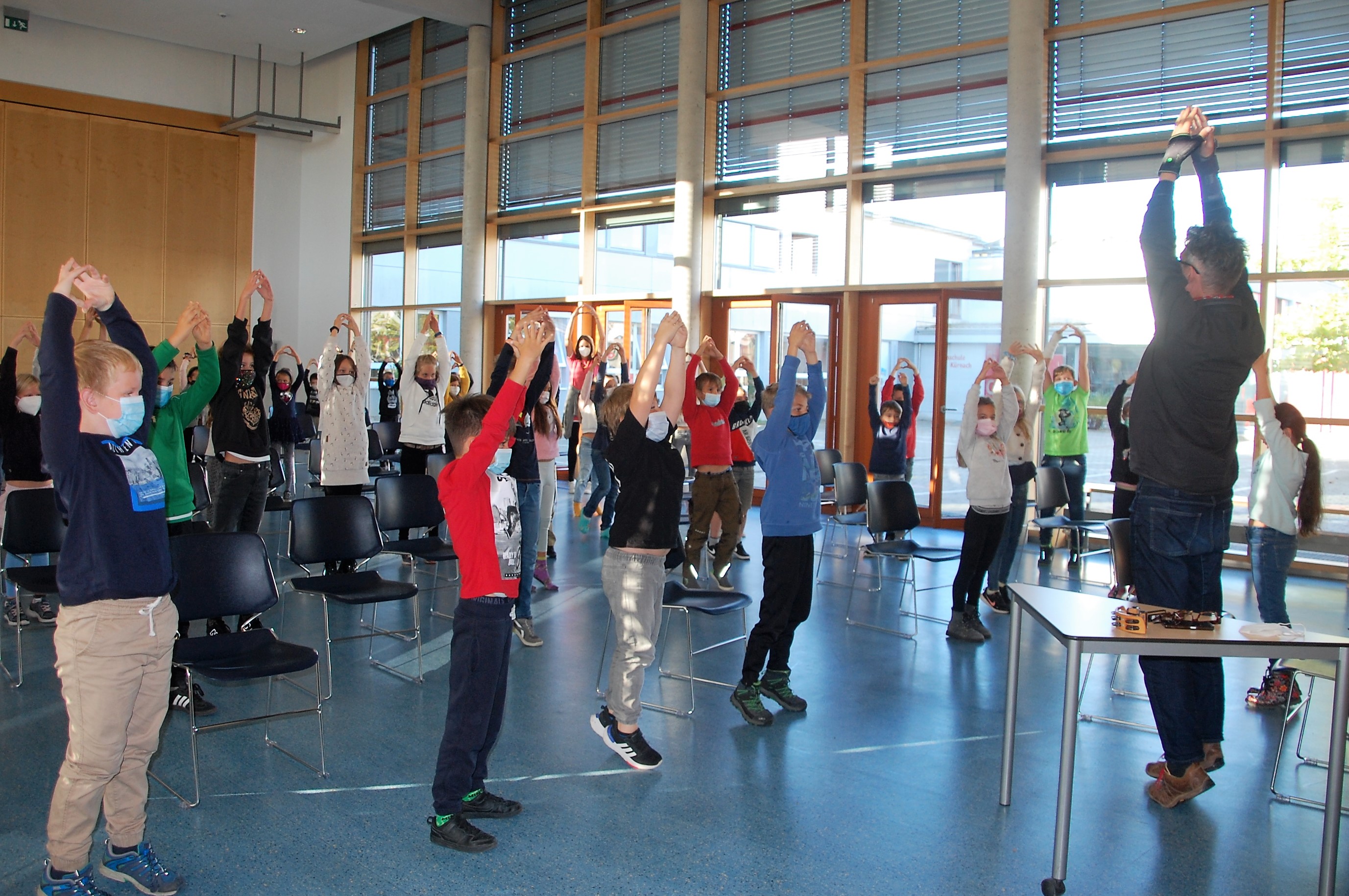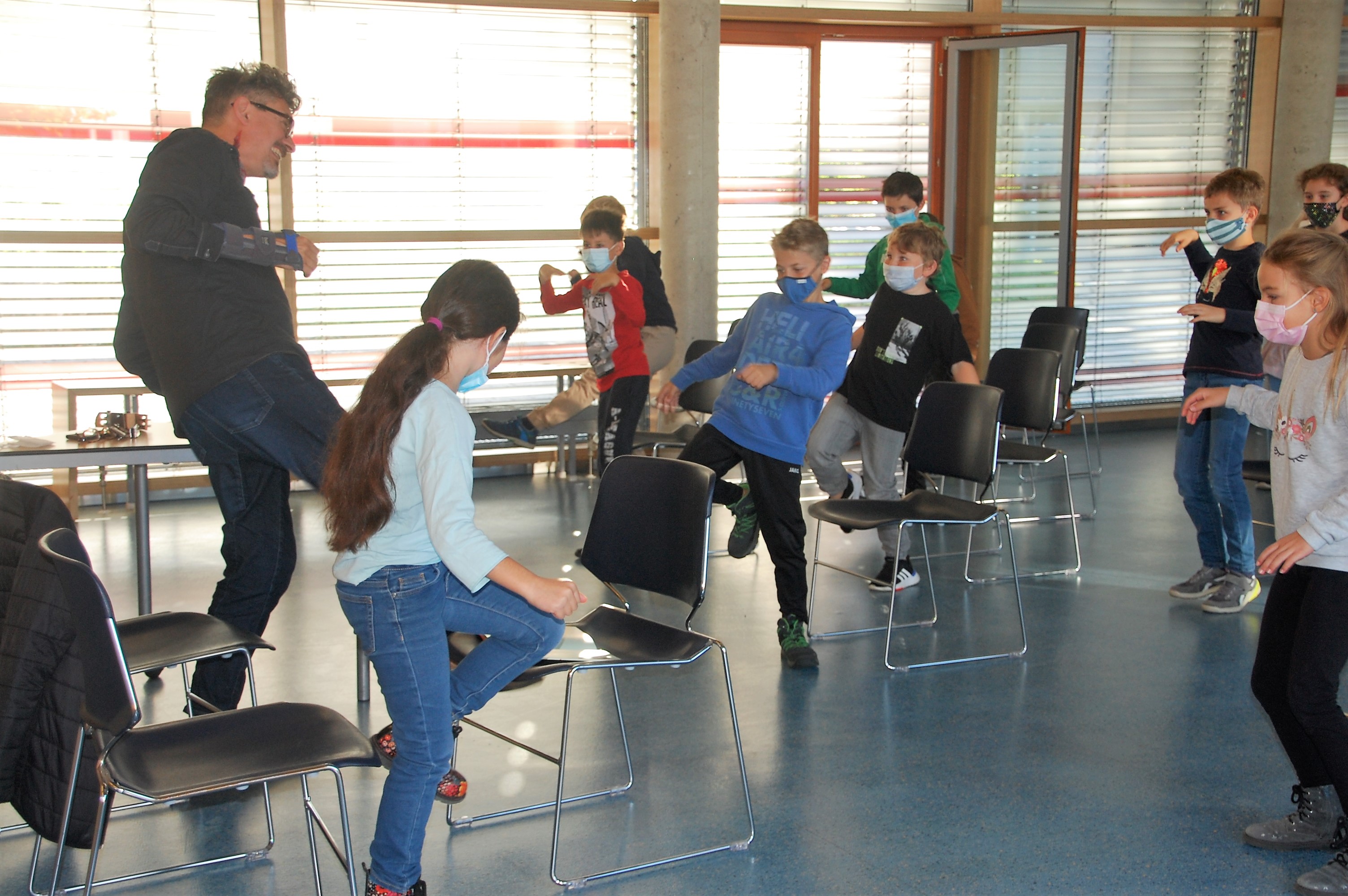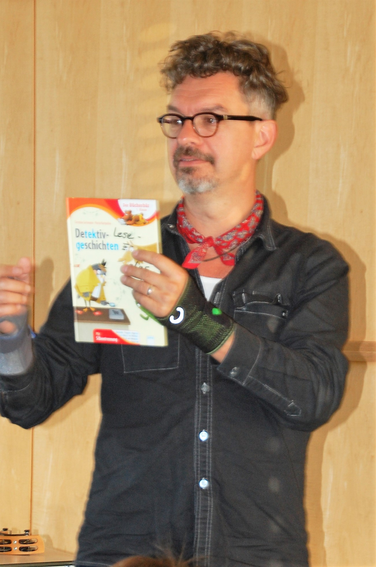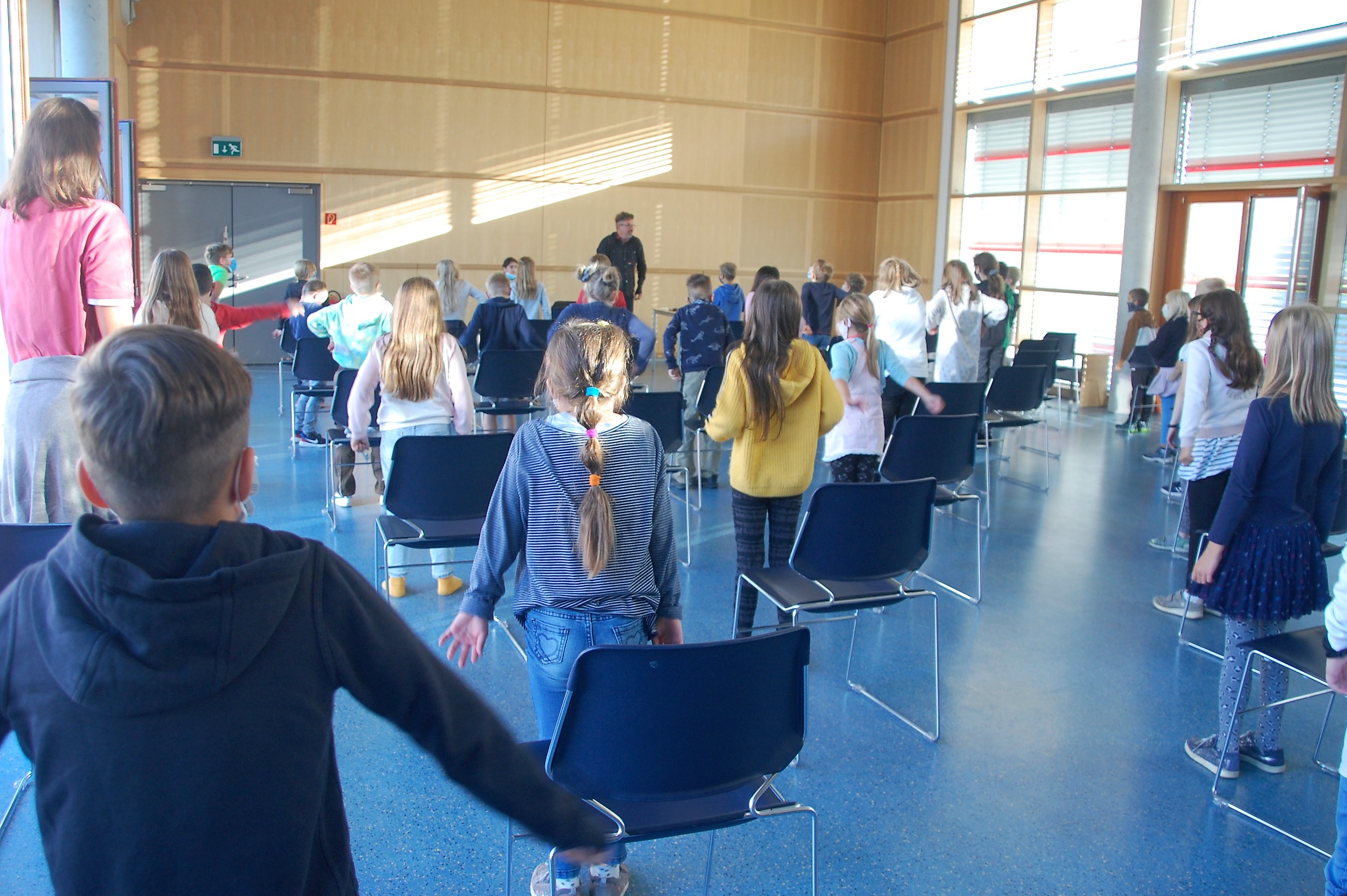 Christian Seltmann lud zu einer Hörspielaufnahme seines Buches Kommissar Ping ein. Die Kinder durften dabei den Part der Geräusche übernehmen. Alle Handlungen im Freien wurden mit leisem Summen begleitet. Fortbewegungen mit Krabbeln der Finger oder Fäuste auf dem Stuhl, sowie Staunen und Schnalzen mit dem Kaugummi wurden eingeübt. Nach einigen Auflockerungsübungen und frischer Luft wurde es ernst und die Aufnahme begann. Seltmann spiele mit der Mundharmonika die musikalische Einstimmung und die Zwischenmoldien und las die Geschichte. Dazu kamen die Hintergrundgeräusche, für die die Kinder zuständig waren. Aufmerksam und gespannt hörten die Kinder die Geschichte und führten die jeweiligen Einsätze perfekt aus. Über eine gelungene Aufnahme können sich nun die Schülerinnen und Schüler mit ihren Lehrkräften freuen. Der Dank gilt dem Landratsamt Würzburg für die finanzielle Unterstützung und der Bücherei Kürnach, die dieses Angebot möglich machte.