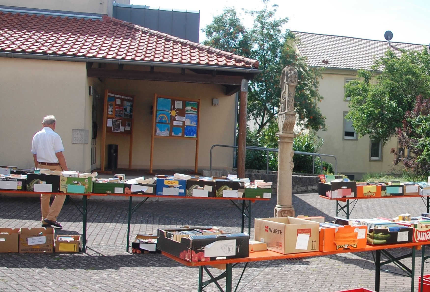 der Mitmachaktion der Bücherei Rückwärts staunen durch Corona. Erstmals zu sehen waren die Beiträge beim großen Büchereiflohmarkt am 15. August 2021.