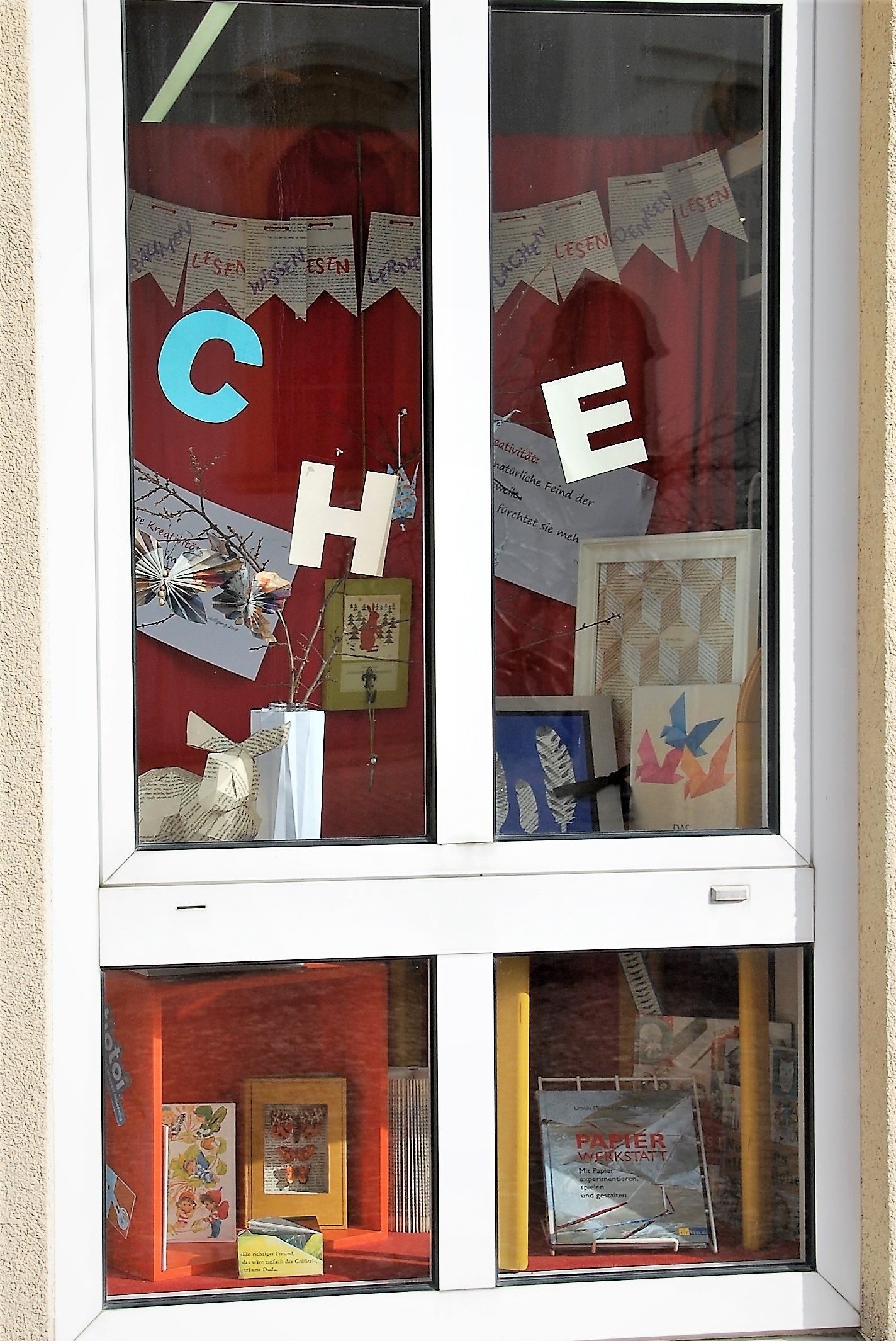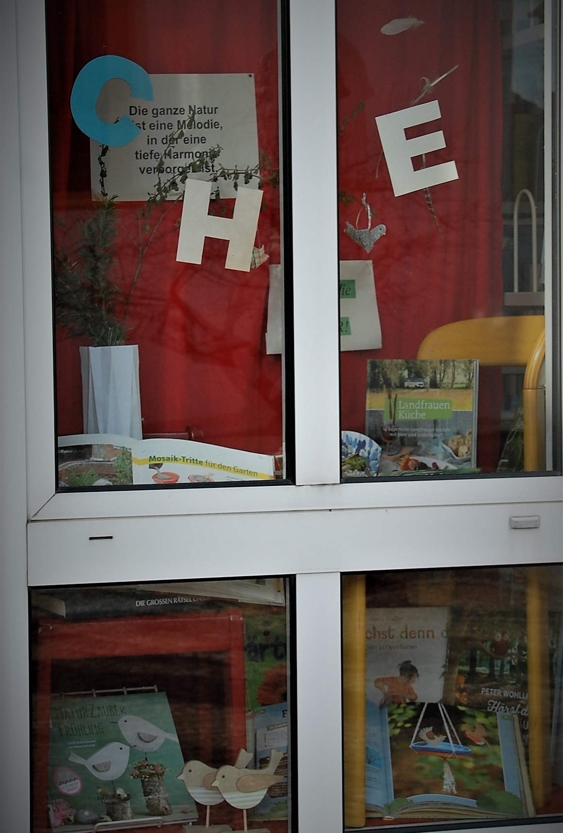 Dem wollte das BüchereiTeam entgegenwirken und gestaltet nun ein Fenster der Bücherei immer wieder neu unter einem bestimmten Gesichtspunkt.