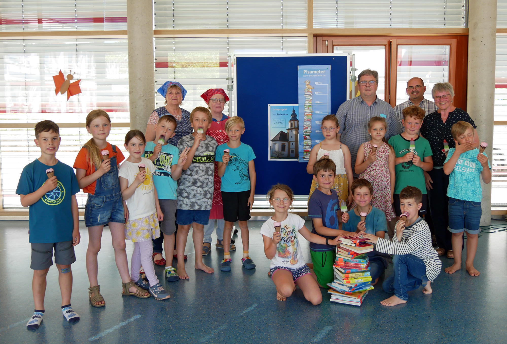 Weil die Kinder so tüchtig gewesen sind, spendierte die ortsansässige Firma Viktor Nußbaumer nun allen Grundschulkindern Eis. Das Büchereiteam lud ein, beim Pfarrfest am 25. Juni zum Bücherflohmarkt zu kommen. Gegen eine kleine Spende könne im Pfarrgarten neuer Lesestoff günstig erworben werden.