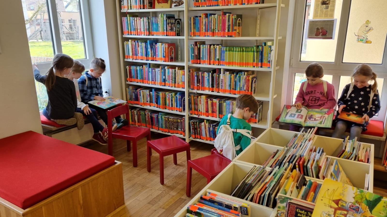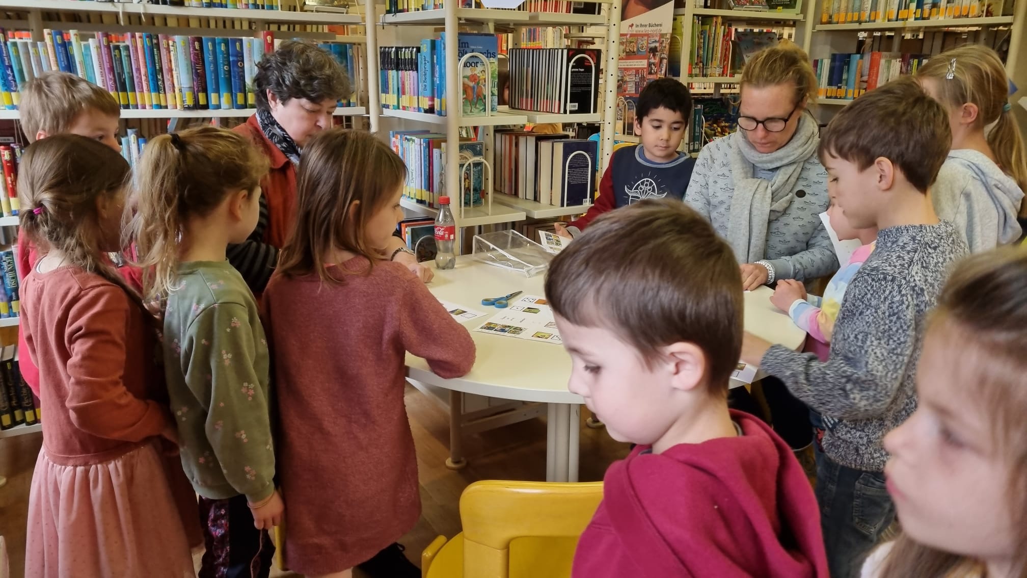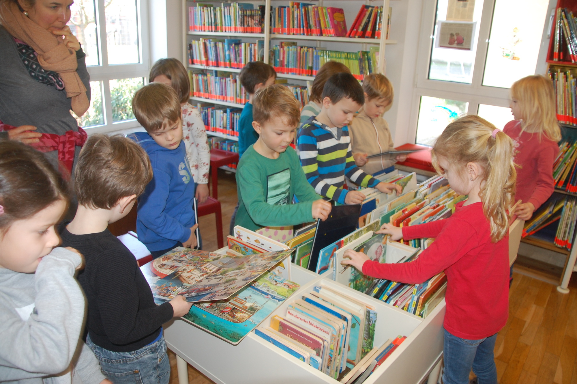 der drei Kürnacher Kindergärten besuchten jeweils dreimal die Bücherei und lernten dabei die verschiedenen Medien und die Ausleihmodalitäten kennen. Bei jedem Besuch las Marion Koeppe aus einem Buch zum Thema Bären/Teddybären, so aus „Teddy und die Tiere“ von Michael Ende und „Ein Löwe in der Bibliothek“ von Michella Knudsen. Was man in Sachbüchern über Bären alles finden kann, so z.B. warum die Zunge der Eisbären blau ist und welcher Bär eine lange Zunge hat war für die Kinder besonders interessant. Jedes Kind durfte sich eine Bastel- und Ausmalvorlage von einem Bären mitnehmen und dann im Kindergarten gestalten. Ausgestattet mit dem Fuchsrucksack, den die Kinder bei ihrem nächsten Besuch in der Bücherei, dann aber zu den gewohnten Öffnungszeiten, gut nutzen können, machten sich die Kinder wieder auf den Heimweg.