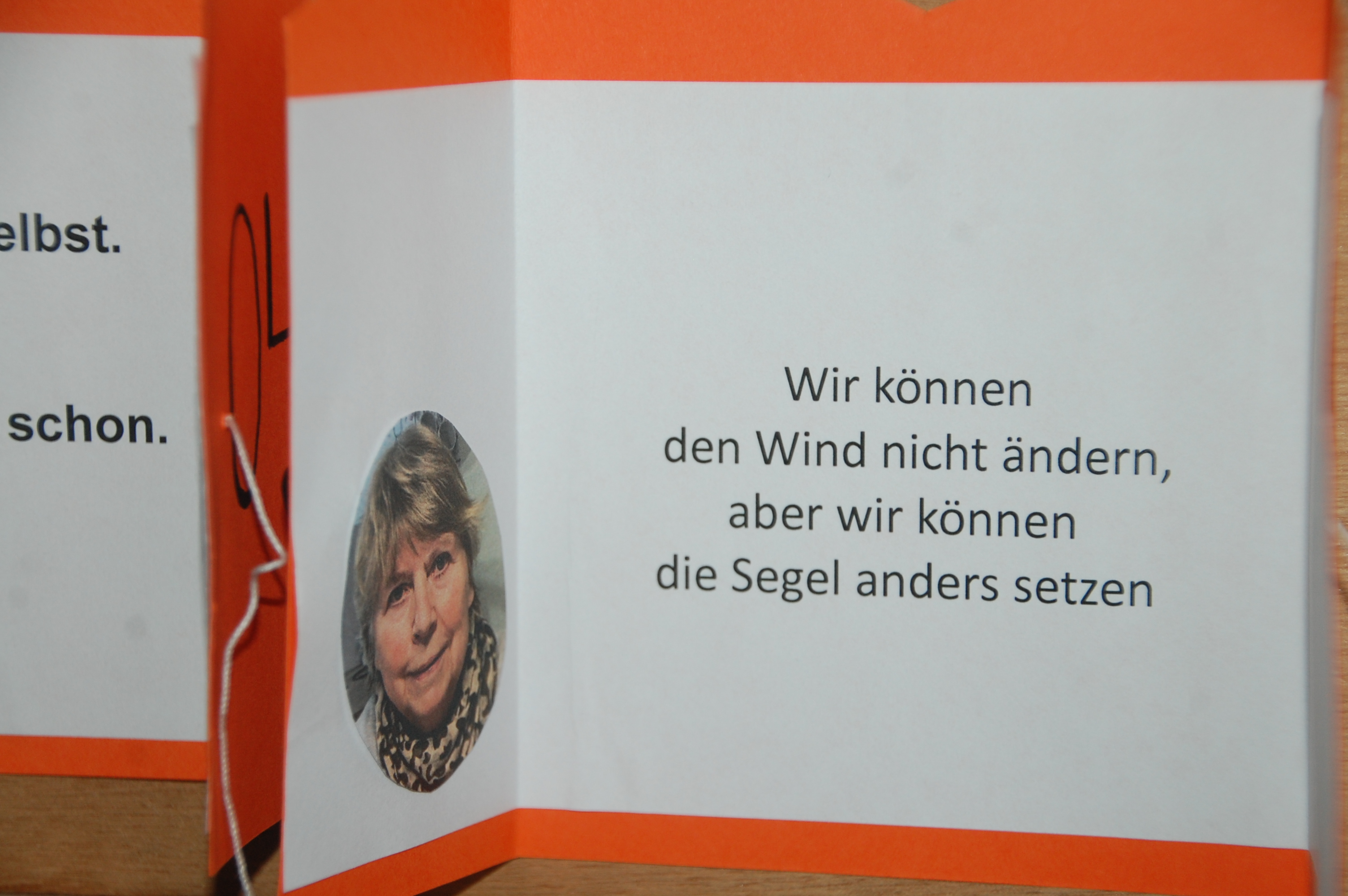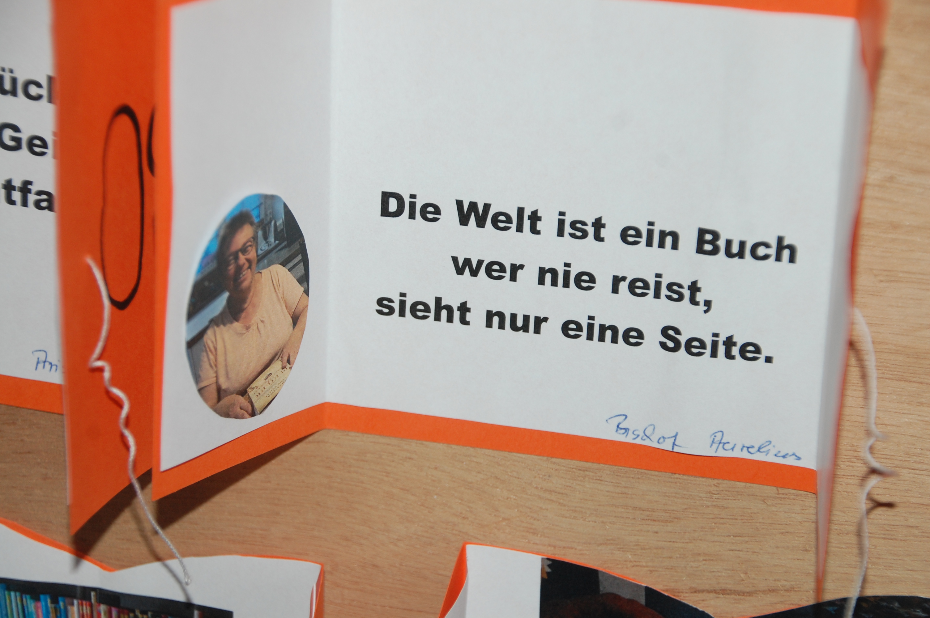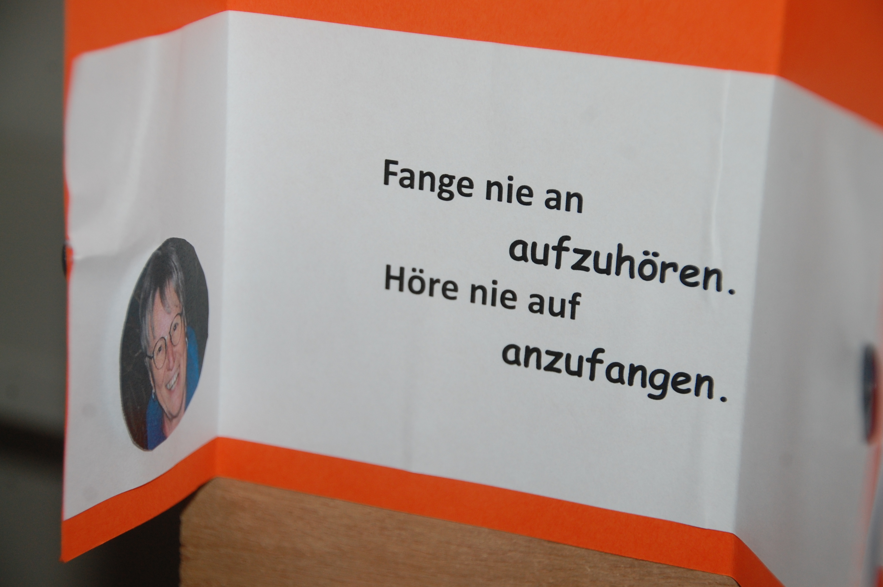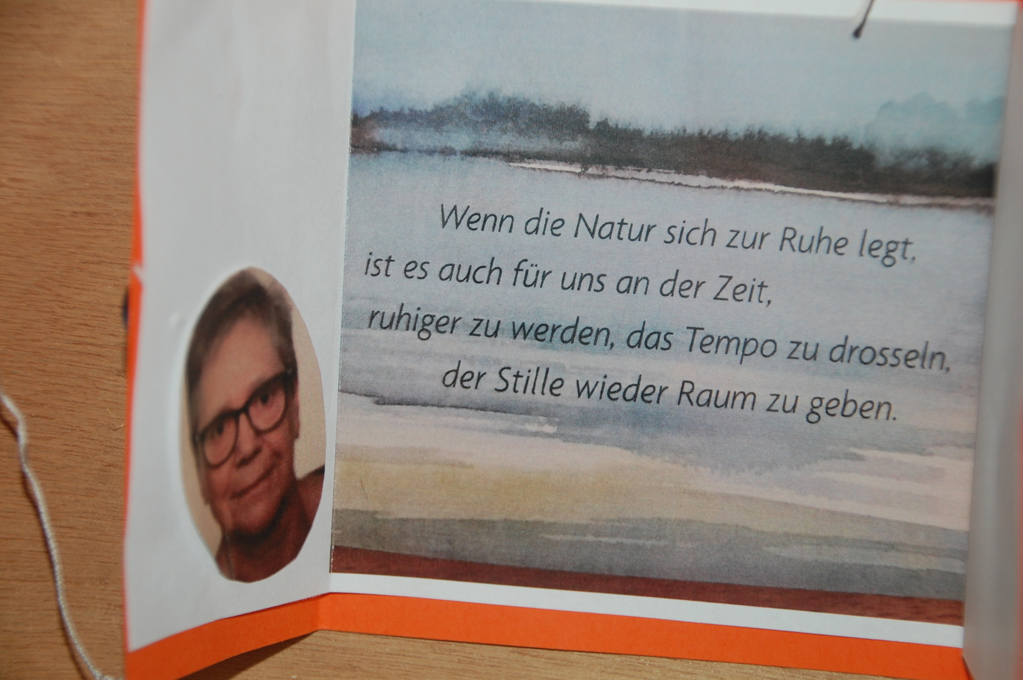 Ein Text von einer bekannten oder auch weniger bekannten Persönlichkeit fand sich hinter jedem Türchen, jeweils ausgesucht von einer Mitarbeiterin der Bücherei. Bei einem Besuch der Bücherei oder einem Spaziergang zum Kirchberg konnte man sich von den verschiedenen Texten inspirieren lassen.
