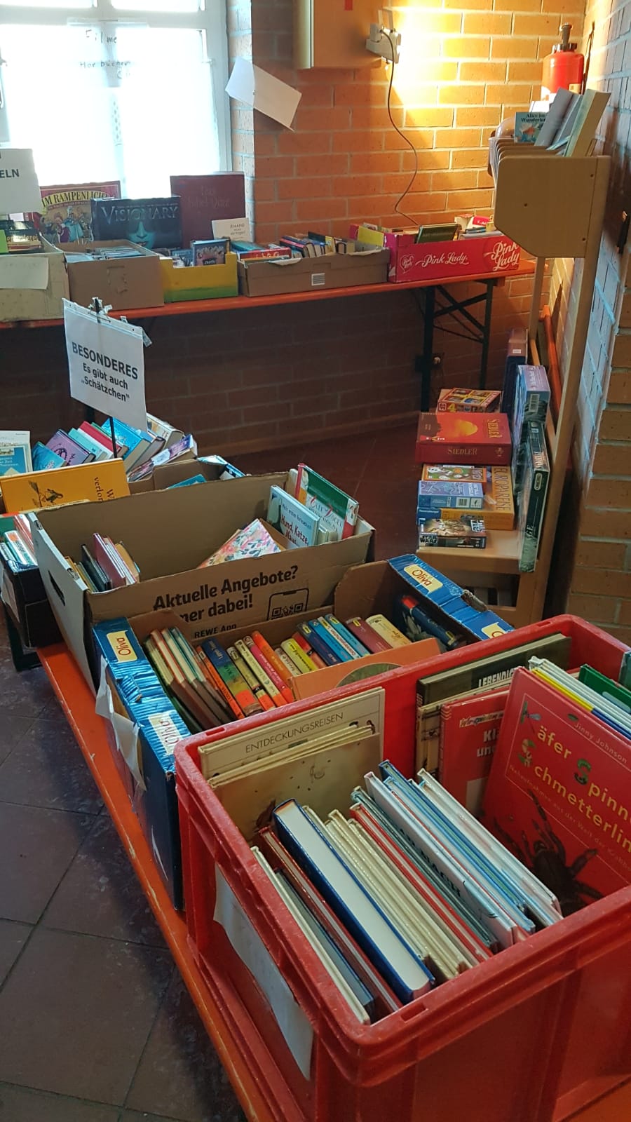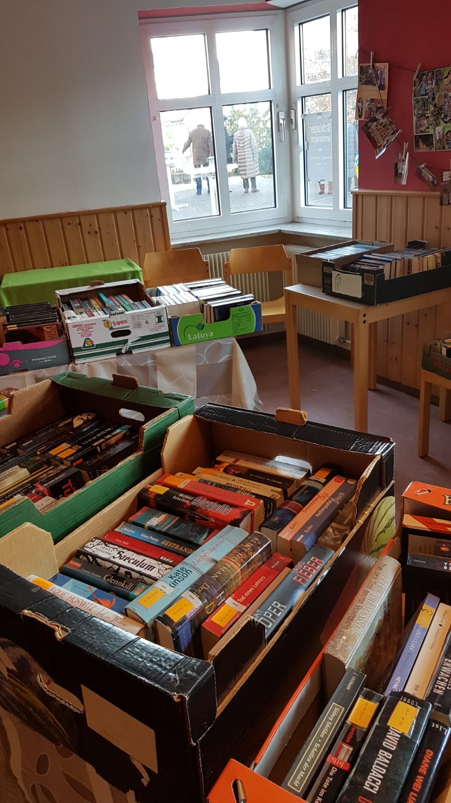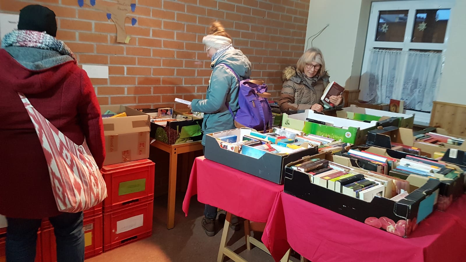 unsere Flohmarktbücher wurden aus ihrem Sommerschlaf geweckt. Weil sie keine Frostbeulen bekommen sollten, durften sie gemütlich in den Räumen der Bücherei auf Tischen und Bänken Platz nehmen. Fein säuberlich getrennt bekamen Krimis und Romane, Kinderbücher und sonstige Literatur ihre Plätze angewiesen. Die Besucher zeigten sich darüber sehr erfreut, konnten sie doch so gleich ihre jeweiligen Favoriten besuchen.