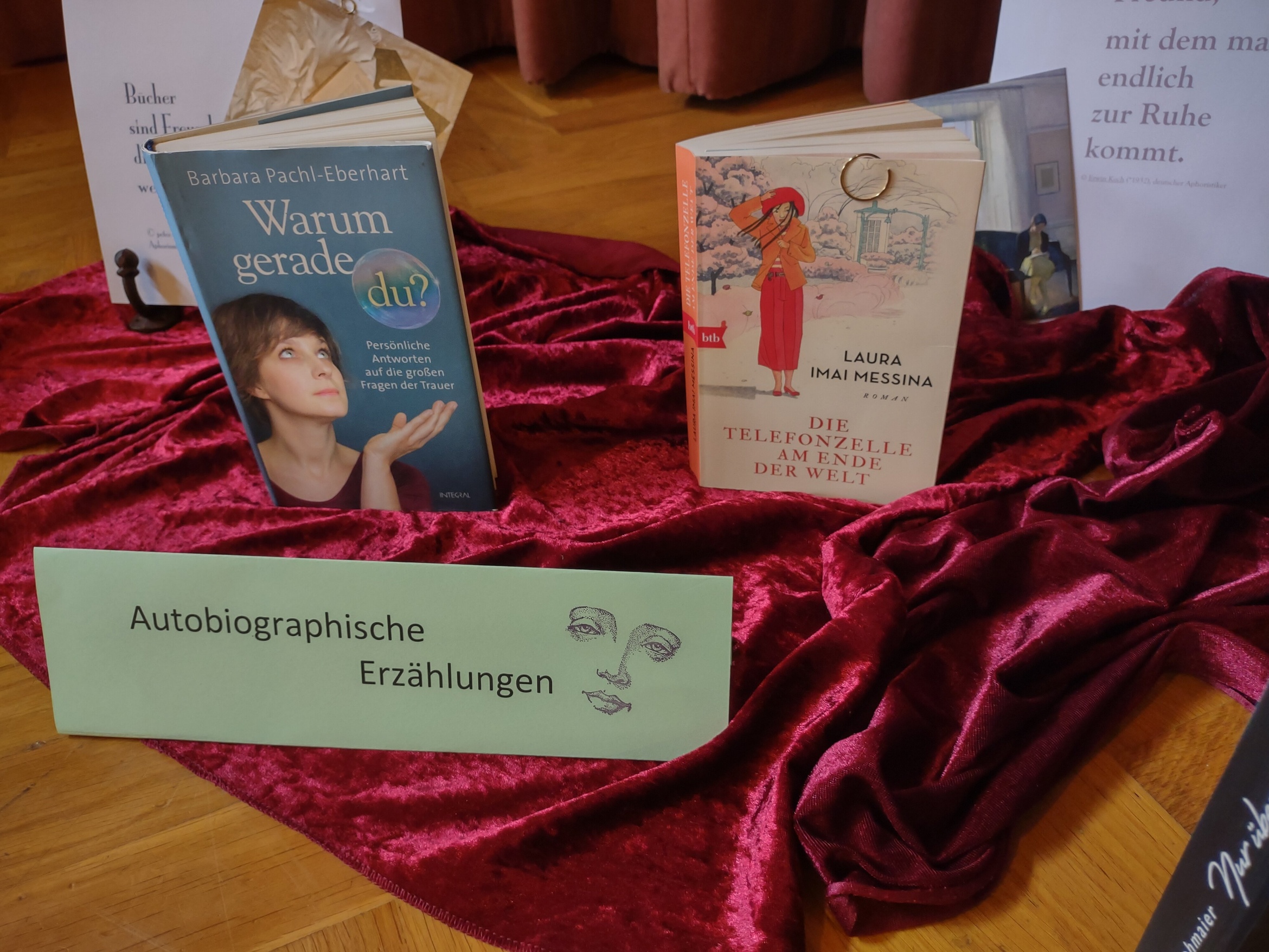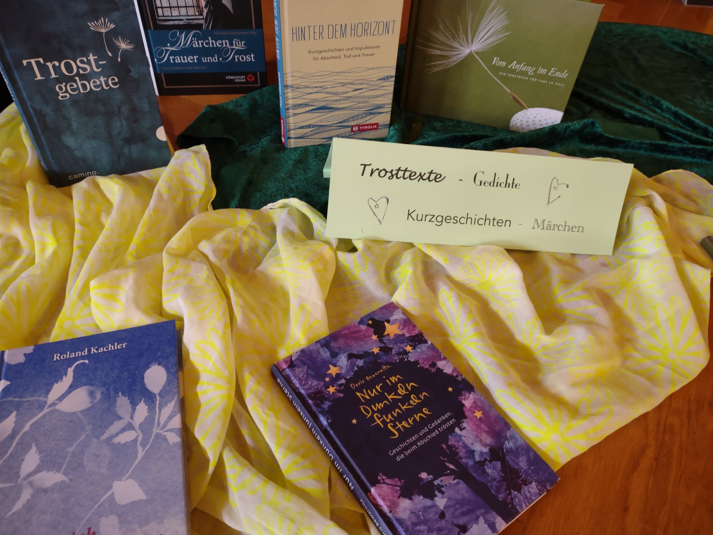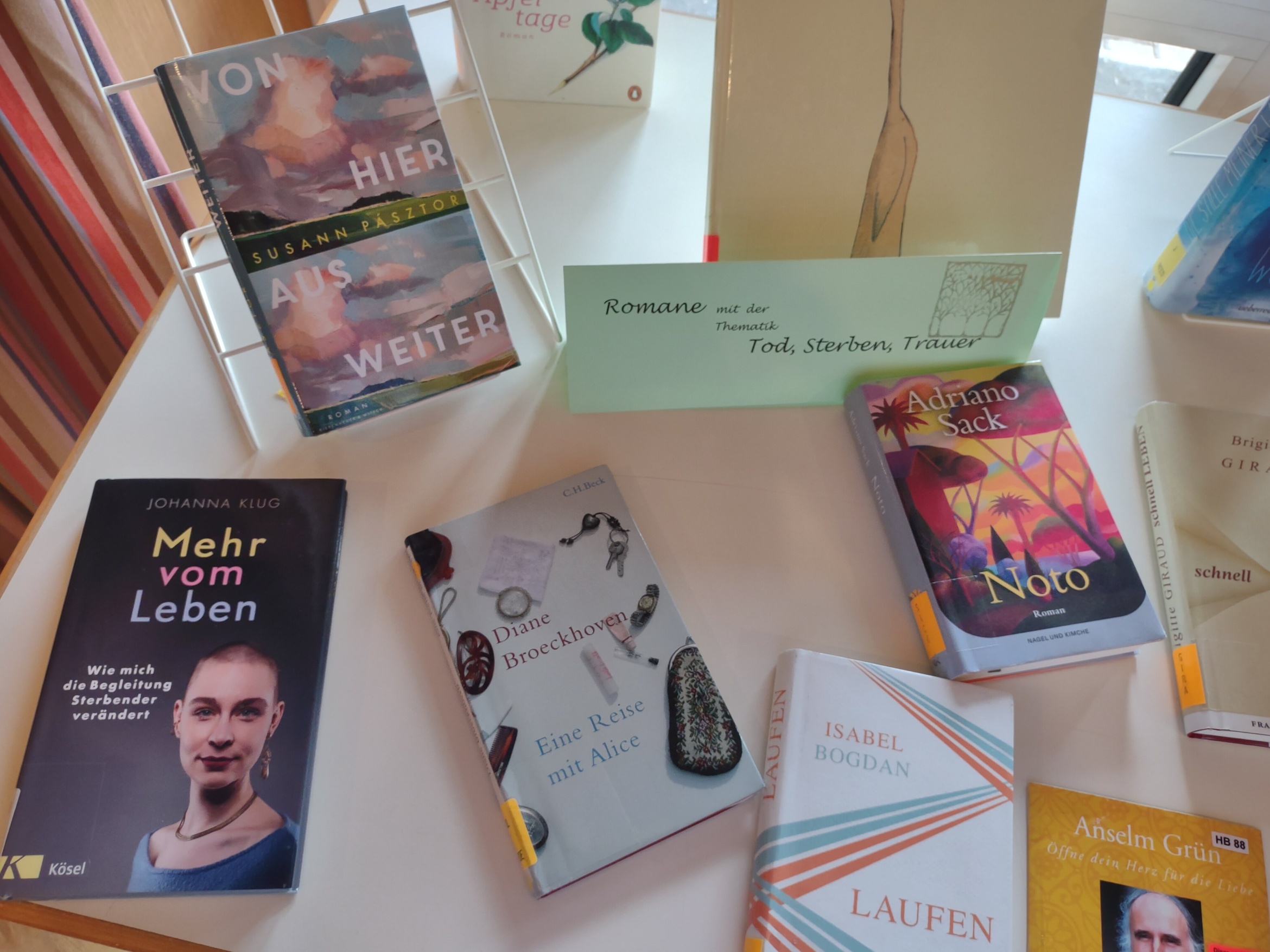 Mit Frau Hermine Pospiech, einer ausgebildeten Trauerbegleiterin aus Estenfeld, bot die KöB am 23.6.25 eine Gesprächsrunde zum Thema an. Mit einer kleinen Einführung durch Frau Pospiech zu den wechselnden Phasen der Trauer, einer thematischen Buchausstellung und anschließendem Kaffeetrinken wurde den interessierten Teilnehmern und Teilnehmerinnen ein einfühlsames Angebot gemacht. Interessierte Leser finden auch in der KöB Kürnach eine Auswahl an entsprechenden Büchern (Bilderbücher, Ratgeber, Romane etc.) für verschiedene Altersgruppen und eine gute Beratung. Eine Literaturliste dazu ist in Arbeit und kann an der Ausleihtheke nachgefragt werden.