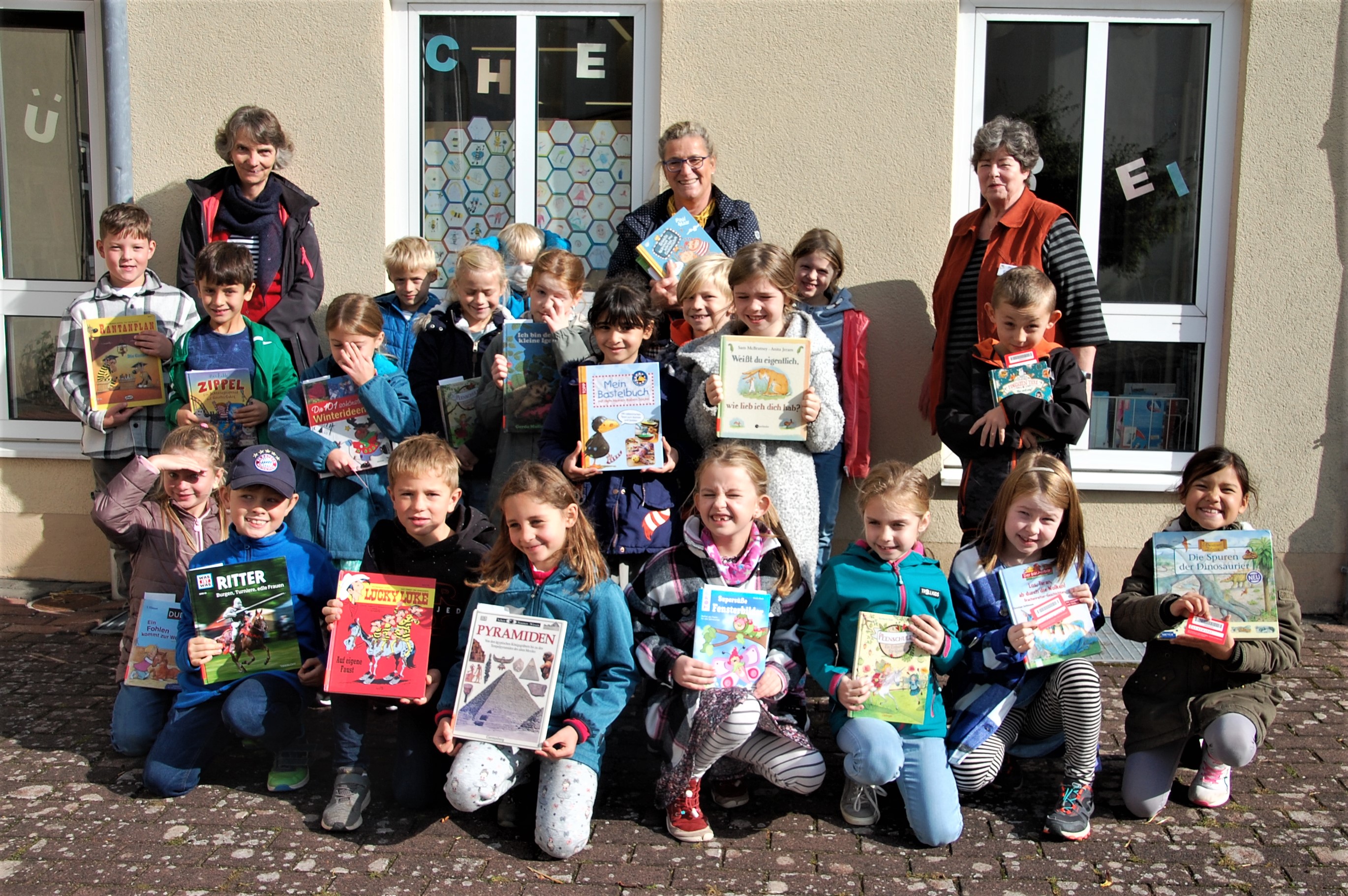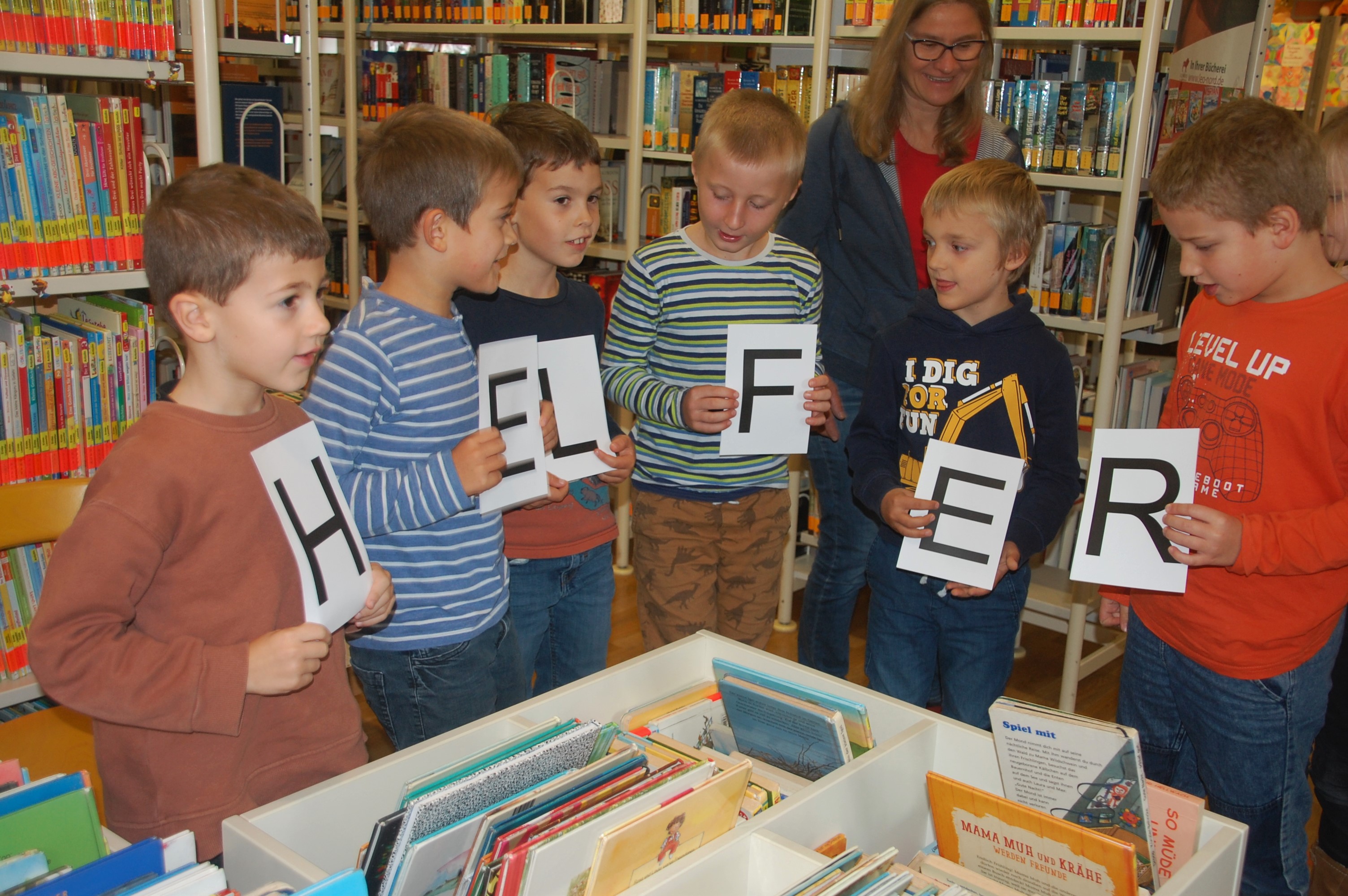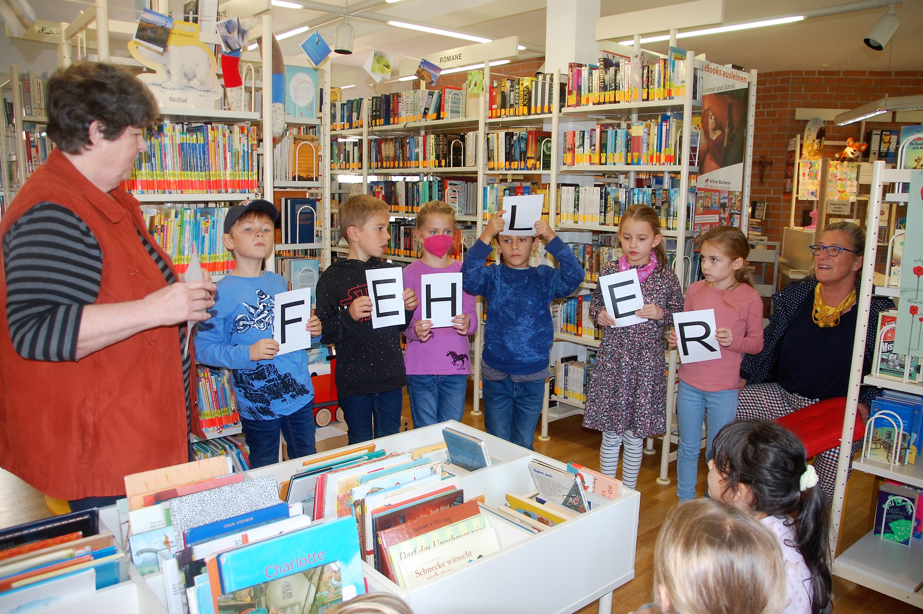 Frau Göbel, Frau Borgmann und Frau Mangelsdorff-Huth die Bücherei. Maria Bauer stellte den Schülerinnen und Schülern die Bücherei, die verschiedenen Medien und die Büchereiordnung vor. Von Marion Koeppe hörten die Kinder aus dem Buch Geniale Fehler von Erfindern und Forschern, die durch Fehler interessante und wichtige Entdeckungen machten. Gemeinsam fanden dann die Schüler aus dem Wort Fehler ein neues Wort: Helfer. Es zeigte ihnen noch einmal bildlich, dass Fehler im Leben auch Helfer sein können. Zum Schluss durften sich alle Kinder ein Buch aussuchen, das sie mit ihrem neuen Ausweis, den Gisela Bach vorbereitet hatte, ausleihen konnten.