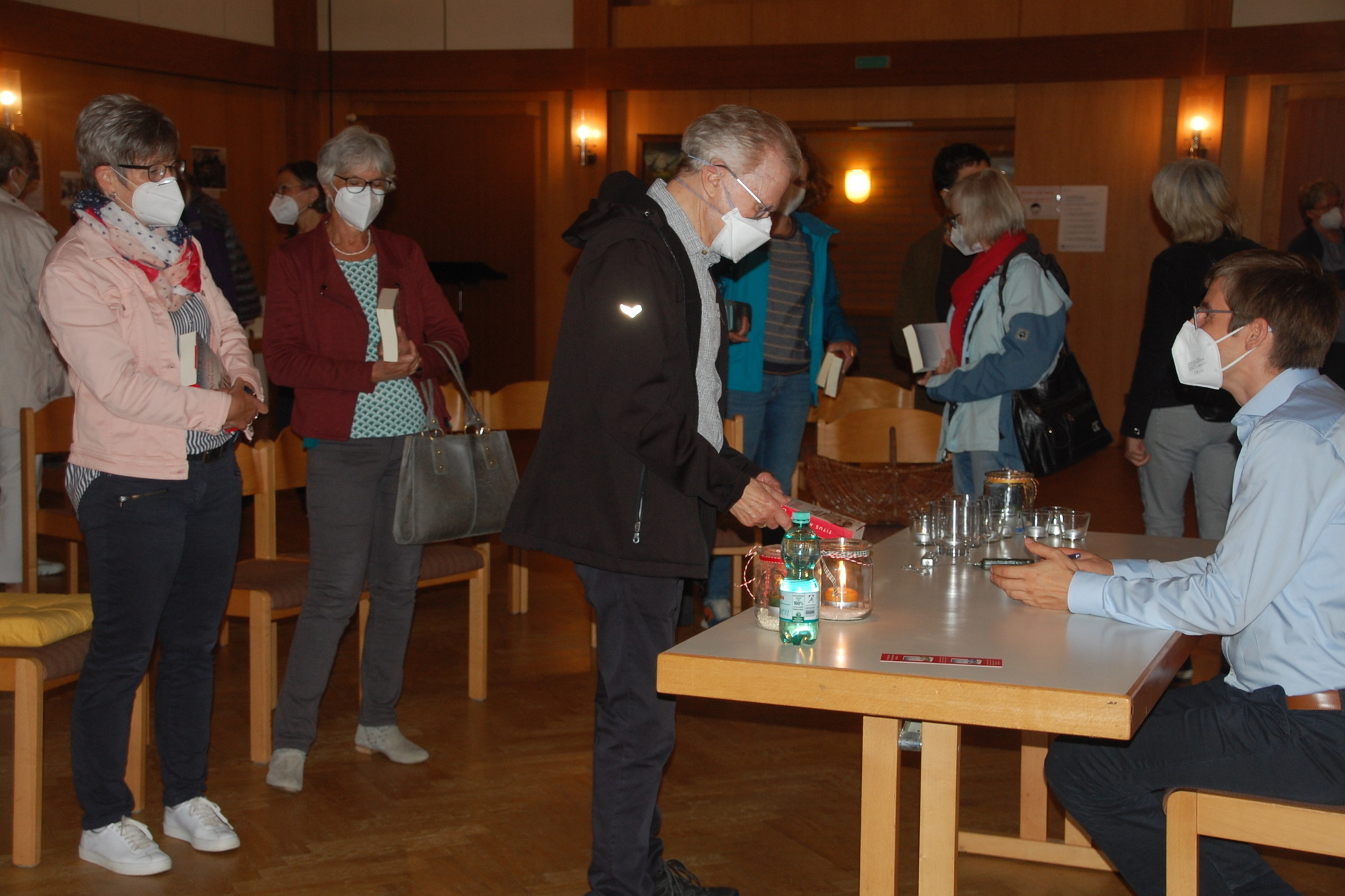 Auf Einladung der Bücherei Kürnach hat Titus Müller einem illustren Kreis seiner Leser*innen ein Stück deutsche Geschichte näher gebracht. Das bewegte Leben der Protagonistin Ria und spannende Details seiner Recherchen über die Geschehnisse kurz vor und während des Mauerbaus machten neugierig auf Lesen. Das Brandenburger Tor in Plätzchenform und die Fassbrause erfreuten das Publikum, das nun gespannt auf die nächsten zwei Bände dieser packenden Spionage-Triologie wartet.
